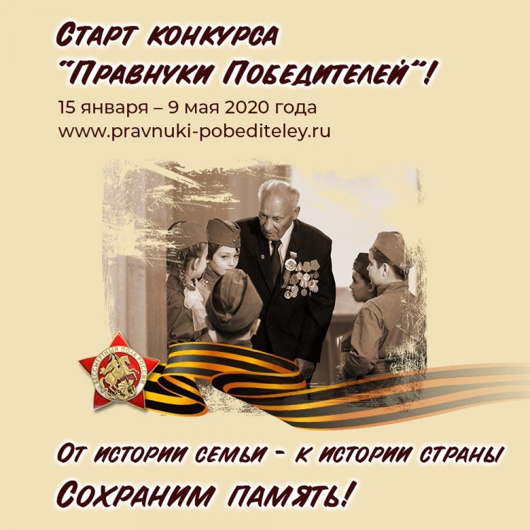 Конкурс исследовательских работ для школьников «Правнуки победителей – 2020» стартовал 15 января 2020 года. Теперь в нем могут принять участие не только учащиеся из России, но и ребята из стран ближнего и дальнего зарубежья в возрасте от 11 до 18 лет.