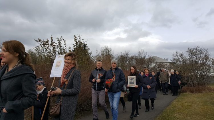 В третий раз «Бессмертный Полк» прошел и в нашем Рейкьявике. Никогда прежде не приходило на него столько людей. В Рейкьявике, по устоявшейся традиции, акции «Бессмертный Полк» и “Георгиевская ленточка – 2018” провели именно 9 мая. По традиции, перед собравшимися выступил Посол России в Исландии Антон Всеволодович Васильев, который подчеркнул значение общей для всех стран анти-гитлеровской коалиции и спасительной для человечества Победы.